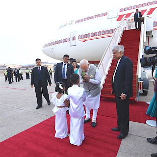 இதன் பின்னர் 11.15 மணியளவிலி லிருந்து விமானத்தை விட்டு தரையி றங்கிய இந்தியப் பிரதமர் மோடிக்கு பிரதமர் ரணில் விக்ரமசிங்க மற்றும் அமைச்சர்கள் வரவேற்பளித்ததுடன் இந் நிகழ்வில் ஏனைய அதிகாரிகளும் கலந்து கொண்டதுடன் மோடிக்கான உத்தி யோகபூர்வ வரவேற்பு நிகழ்வு ஜனாதிபதி செயலகத்தில் ஆரம்பமாகவுள்ளது.